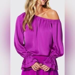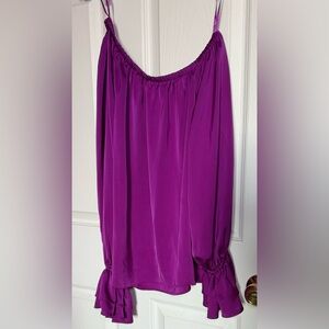 Stunningly vibrant purple off the shoulder blouse with ruffle/bell sleeves. No visible signs of wear.