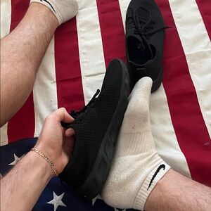Size 45/11 US generic black river shoes. Mesh and plastic sole. For river’s and lakes and tubbing.