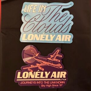 Listing is for 2 new stickers from the April 2024 LONÉLY Air Collection (BÉIS x Lonely Ghost Collab).