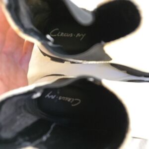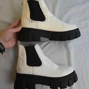 Circus by Sam Edelman White Patent Darielle Black Lug Sole Chelsea Booties HAL3