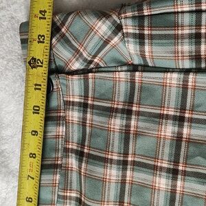 Chic A-line skirt with a plaid pattern. Features green and brown tones. Ideal for versatile styling.
