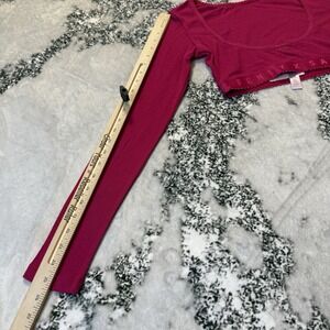 Savage X Fenty Top Womens Size M Red Long Sleeve Crop Bralette Logo Band Cotton