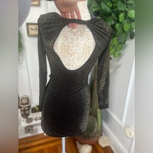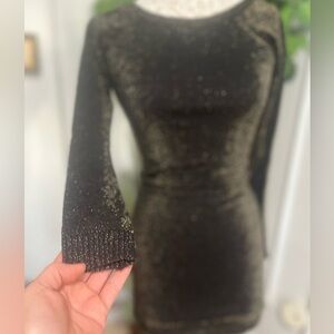 bebe Black Shimmer Long Sleeve Bodycon Dress M/L
