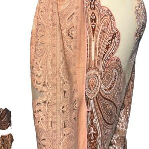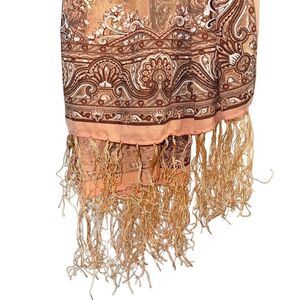 Delicate pink and peach shawl, scarf, wrap see through mesh & tassels 60 in long