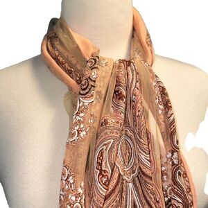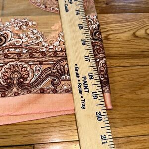 Delicate pink and peach shawl, scarf, wrap see through mesh and tassels 60 in long about 20 inches wide
