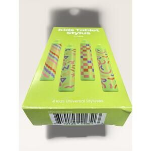 The 4-Pack Kids Tablet Stylus Pen Crayon Style in green is a set of durable and lightweight styluses designed specifically for kids. Compatible with a wide range of tablet models including iPads, Samsung, Amazon Fire, Lenovo, Huawei, and more, these styluses feature a soft tip and are easy to handle. Made of plastic and silicone, these styluses are kid-friendly and come with a 1-year manufacturer warranty. Perfect for young users, this set includes 4 styluses in vibrant colors to enhance their digital creativity.