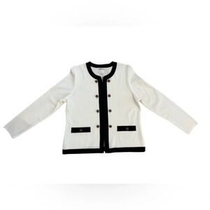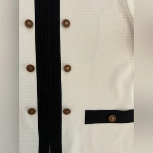 MISOOK White & Black Zip Jacket Cardigan with Brown/Brass Button Detail Size M