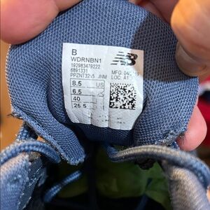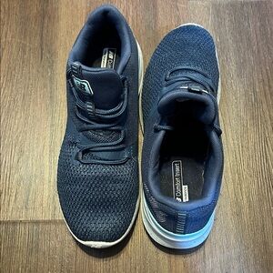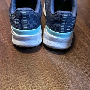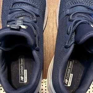 Dark blue New Balance shoes with a sleek design. Perfect for active wear.size 8.5