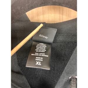 Authentic Disney “The Nightmare Before Christmas” cropped hoodie in size XL. Features a bold front graphic of Jack Skellington and Sally under the moon with bats, printed on a black hooded pullover. The hem is shorter than a standard hoodie — a cropped, fashion style rather than traditional length.