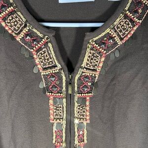 Alfred Dunner Aztec Style Zip Up Blouse Size M