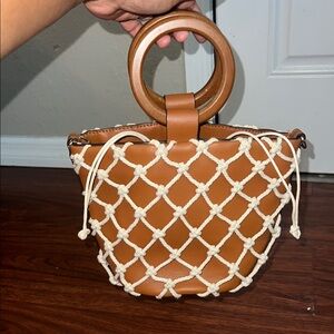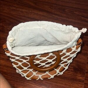 Lulu's Tan and White Bag with Netted Design