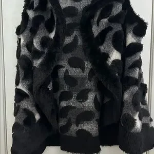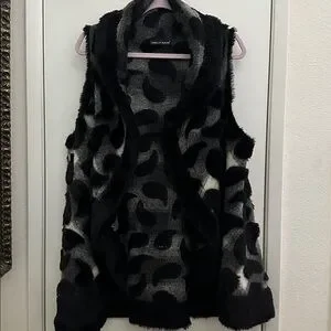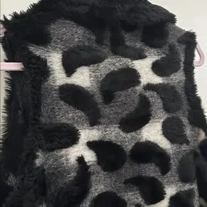 Rare Find Lorella Sgarbi Black White and Gray Wool Blend Patterned Faux Fur Vest Duster.