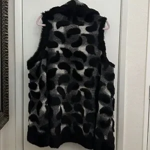 Rare Lorella Sgarbi Black White and Gray Wool Blend Patterned Faux Fur Vest Sz M