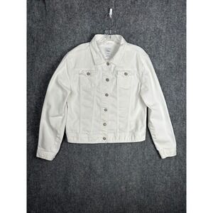 Gap Classic White Denim Jean Jacket Size L Trucker Style Womens Preppy Stretch