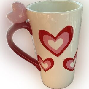Enjoy your favorite beverage in this charming ceramic mug featuring a heart design this Valentine’s Day. Microwave and Dishwasher Safe. No chips.