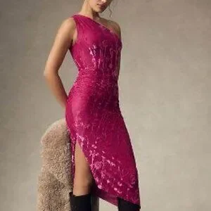 Hutch One-Shoulder Ruched Velvet Dress Pink/Rose/Magenta XL