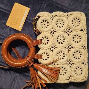 Tags: Handbag, tote bag, satchel, crochet, knit, woven, boho, bohemian, vintage, retro, artisanal, neutral, cream, tan, brown leather, crossbody, shoulder bag, summer, Vintage, Resort, Neutral, Leather, Travel, Dooney & Bourke, Coach, Michael Kors, Kate Spade, Fossil