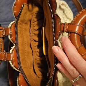 Interior zip pocket and two slip pockets in a faux suede lining