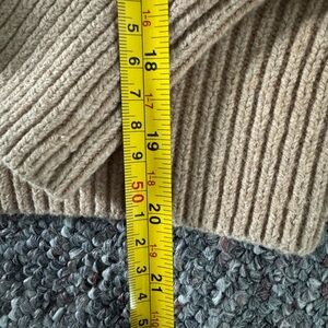 Madewell Tan Ribbed Crew Neck Cotton Wool Blend Baggy Sweater