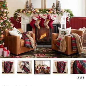 Pottery Barn Stewart Plaid Throw Ivory with Faux Fur In great condition SOLD OUT