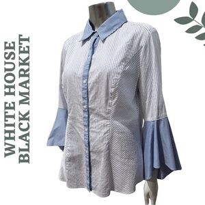 White House Black Market Bell Sleeve Striped Button Front Blouse Top Size 14