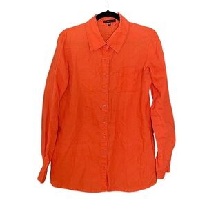 COTTON GINNY Linen Button Front Long Sleeve Blouse M