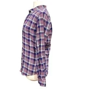Frank & Eileen Barry Plaid Button Front Shirt SZ L Red White Blue