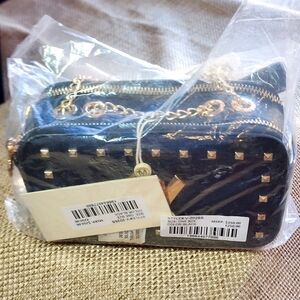 Valentino Orlandi Crossbody ITALY Camera Bag Purse Black Gold Hardware MSRP $250