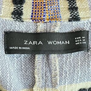 Zara Woman Kimono Poncho Oversized Coverup Stripe Pom Pom Fringe M Boho Swim