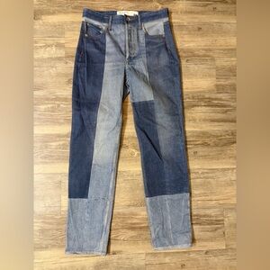 Relaxed jegging with a two-tone color block denim design. Perfect for casual wear.