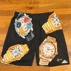 Black Shorts with Watch Print