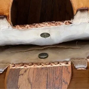 Handcrafted Tan Woven Bag with Wooden Handles Vintage