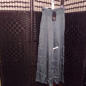 Stylish wide-leg pants in a stone blue color. Made with a silky material with a light and flowy texture.