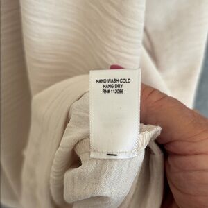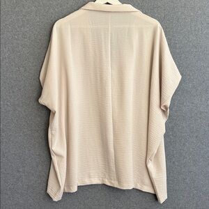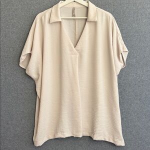 NEW! Woven Airflow Collared V-Neck Short Sleeve Top-L/XL Sand Beige