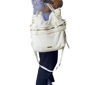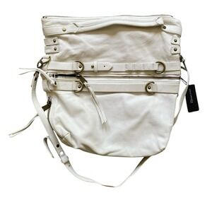Joelle Hawkens Foldover Victoria Satchel Bag White Pockets Strappy Designer. NWT. There are some spots all over the bag, not very noticeable. Please make sure you checked on them on photos. Thank you for viewing!