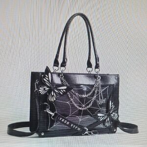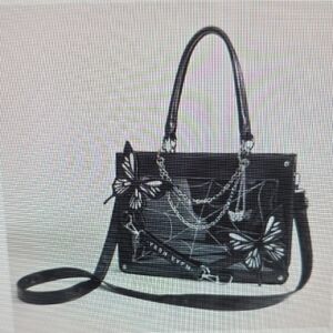 Elegant black tote bag featuring stylish butterfly accents and chain details. Comes with crossbody strap. New Without tags!!!