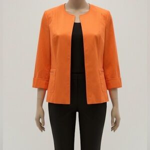 Preston & York, orange jacket, cropped jacket, open front blazer, statement jacket, workwear, office chic, minimalist, classic, bold color, zip pocket, size 12, Mercari style, Poshmark classic