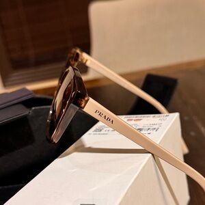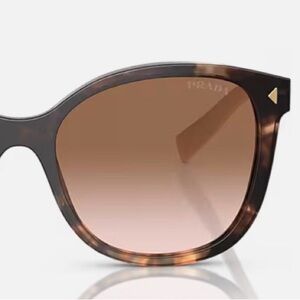 Prada PR 22ZS square-frame sunglasses in a rich caramel tortoise with brown gradient lenses. A refined yet modern statement piece showcasing Prada’s iconic craftsmanship and timeless style.