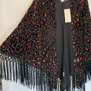 Velvet Burnout Fringe Kimono Shawl Butterfly Sleeves M/L