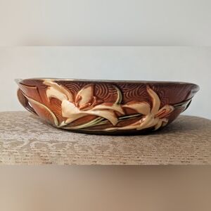 Roseville Floral Ceramic Bowl in Brown and Cream