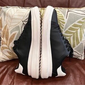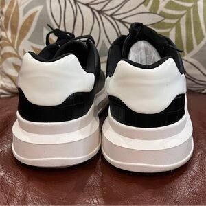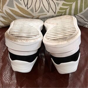 Elevate your style with these classic black and white men's sneakers. Perfect for any casual occasion, these shoes offer both comfort and a modern look. Men size EU 44. Pre-owned, like new uppers, dirt marks on outsole. Thank you!
