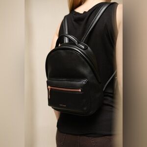 This mini Matt & Nat backpack combines both function and style! You'll love its vegan leather and classic minimalist design. Practical elements include a zippered main compartment and front pocket, as well as two interior pockets for ultimate organization.