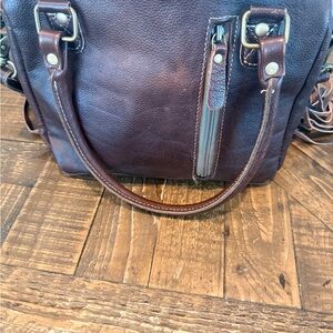 Brown and White Fringe Leather Bag