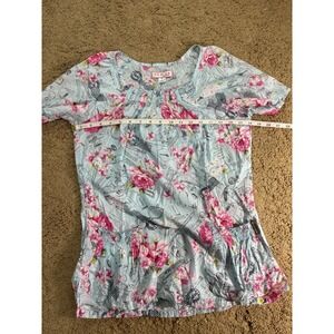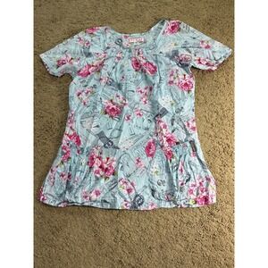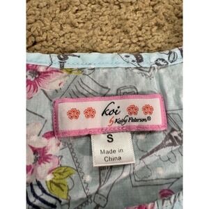 Koi by Kathy Peterson Scrub Top Women Small Mon Amour Floral Square Neckline