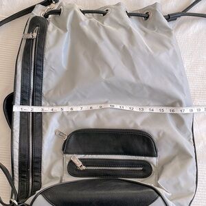 The Co-Lab Gray and Neon Yellow Nylon Large Travel Tote Bag is in excellent condition and is designed for travel. It is made of nylon for durability and water resistance and features multiple zippered pockets for storage and the organization of travel essentials. It is a spacious and stylish bag that is perfect for travel, work, or everyday use. The bag features a combination of gray and neon yellow nylon material, which gives it a modern and sporty look.