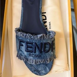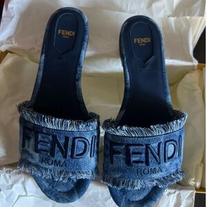 Fendi Sunshine Frayed Denim Slide Sandals Brand New w/ Box