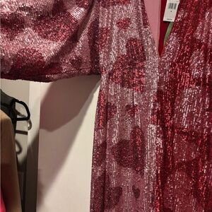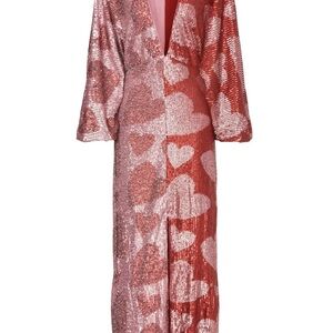 FARM Rio Pink and Red Sequin Heart Midi Dress