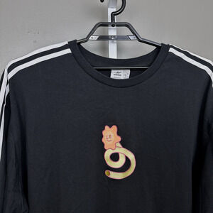 This Adidas dress is a black sweatshirt dress with a crew neck, drop sleeves, and a pullover closure. Made of 100% cotton, it features a "Always Original" graphic logo. The short length dress has a hood and is perfect for streetwear, outdoor, or city-inspired styling with a touch of 90s nostalgia. Plus size 4X. This is an Adidas Originals "Always Original" black cotton sweatshirt dress with white 3-Stripes and a "Be Yourself" graphic. It is machine washable and showcases the brand's signature style.