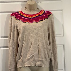 Cabi 4416 Winsome Oatmeal Beige Pink Embroidered Collar Pullover Sweater medium