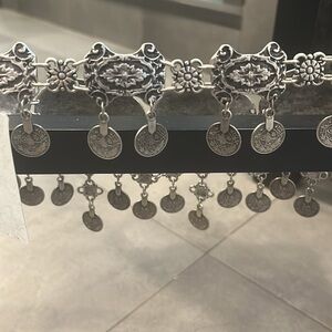 Hanging Floral and Coin Like Detail/ Adjustable Hook with Chain Closure